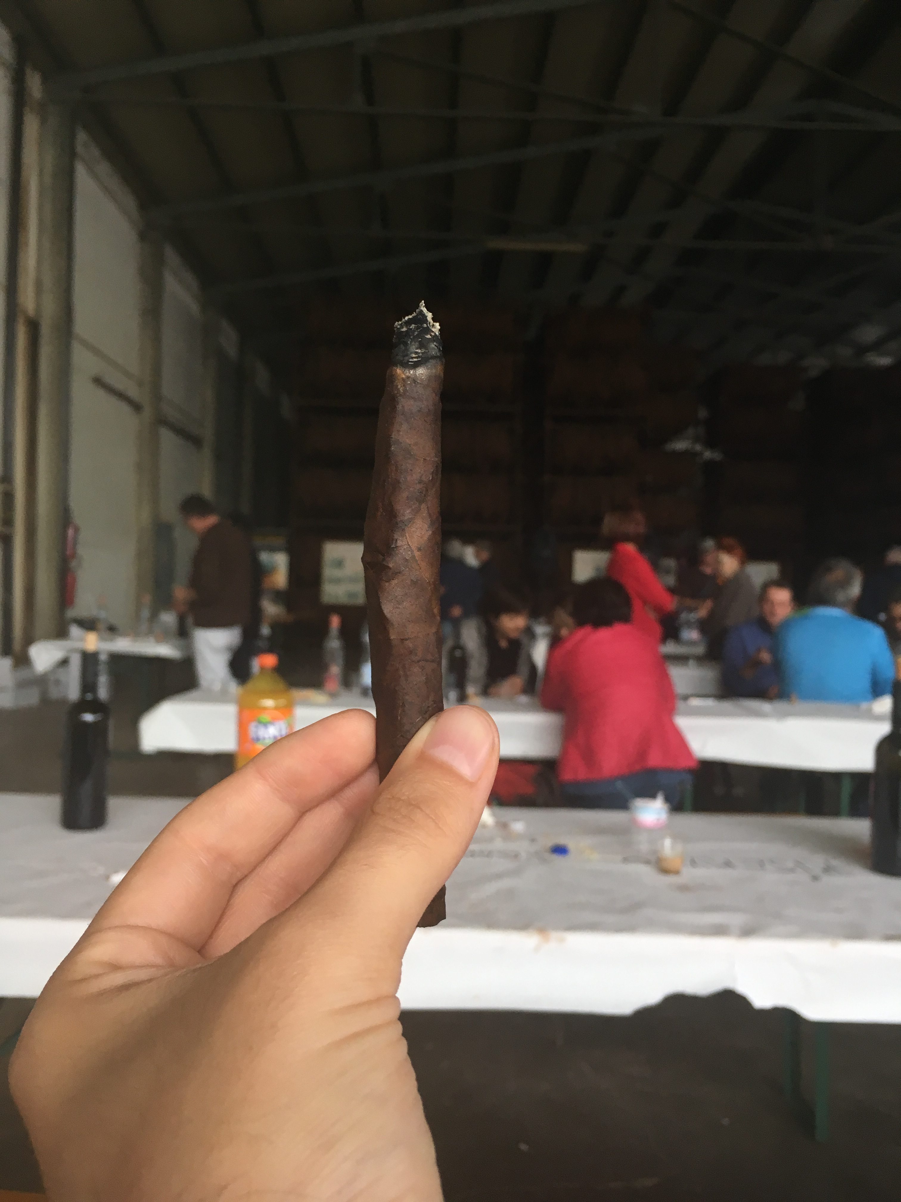 A fine pasto, un po’ brillo e soprattutto pieno, io e Simone Fazio di CigarBlog abbiamo guidato una degustazione di un nuovo sigaro Tornabuoni, che giungerà sul mercato a breve. Il nome del sigaro non è stato ancora rivelato e tutti quanti abbiamo affrontato questa fumata alla cieca. Devo dire che il sigaro è molto interessante, mi è piaciuto molto perché ha una paletta aromatica ricca, ma una carica nicotinica non eccessiva e si lascia fumare molto facilmente.