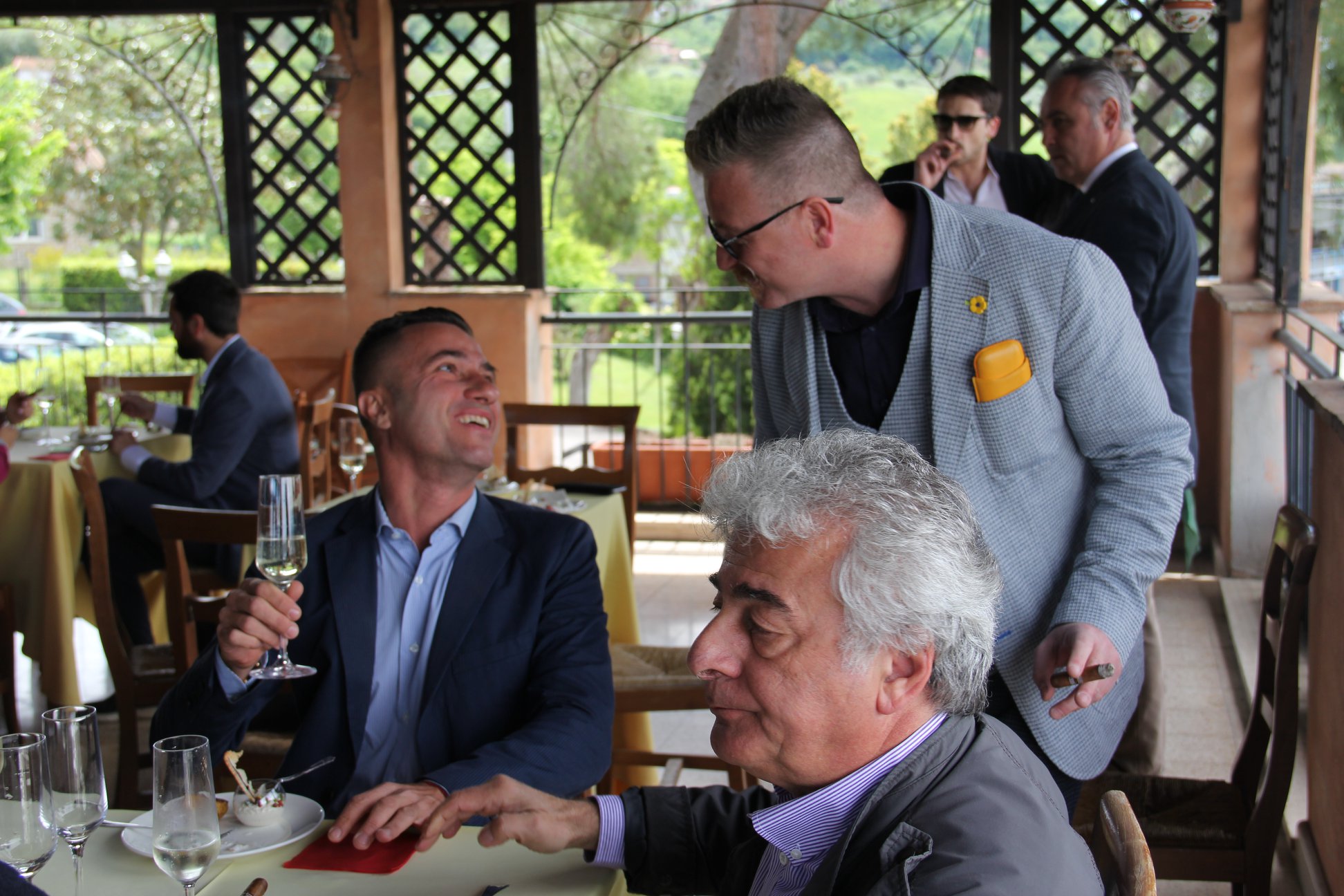 Il luogo dell’appuntamento era il ristorante La Pergola, vicino a Civita Castellana, in provincia di Rieti, a due passi da Roma. Sono arrivato con un po’ di anticipo e ho subito incontrato Fabio e Alessandra De Simone agente di ITA Agency e responsabile per la distribuzione dei sigari premium. Tempo qualche minuto e ci ha raggiunto anche Abe Flores, l’ospite d’onore, accompagnato da Enrico Della Pietà, brand manager Davidoff per l’Italia.