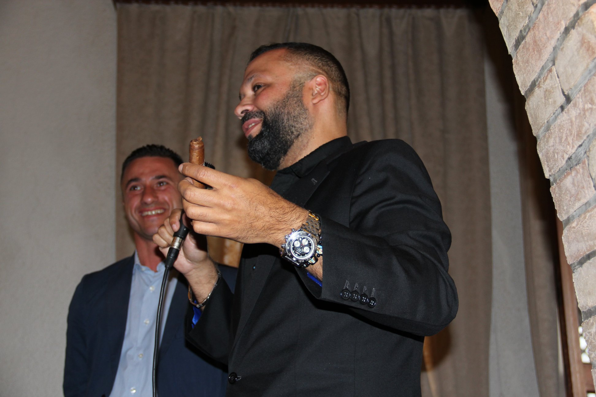 Per spiegare come crea un sigaro ha fatto un paragone con la musica che ha me è piaciuto molto. Il sigaro – a suo modo di vedere – è come una composizione musicale di cui un orecchio attento sa riconoscere la struttura, come ritmo e parte melodica. Per lui, il ripieno del sigaro è come una batteria che dà il tempo e ritmo alla composizione. A seguire la batteria, arriva il basso che la accompagna e avvolge il tutto come la sottofascia. Infine, arriva la melodia, la fascia che presenta a tutti la musica. E’ una cosa a cui non avevo mai pensato, e mi è piaciuta molto. Abbiamo acceso il sigaro fuori dalla sala da pranzo e Fabio ha pensato bene di abbinare al robusto El Criollito un ottimo porto. Si vede che è un buongustaio come me!