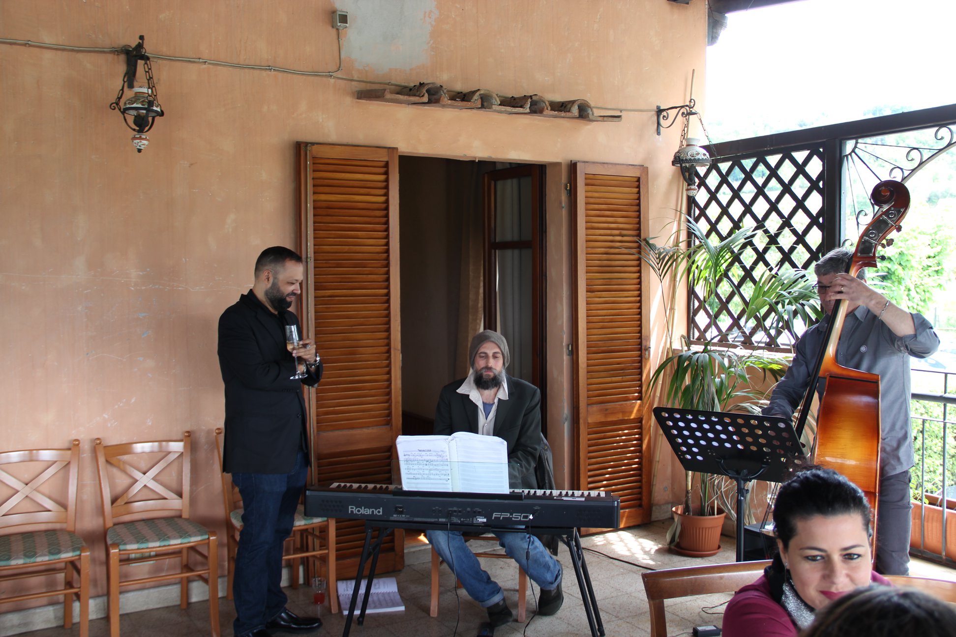 Nel pomeriggio Abe ha dimostrato quanto la musica abbia inciso nella sua formazione e crescita personale… suonando! All’evento c’era anche una piccola band per accompagnare la giornata e lui ha prima preso il contrabbasso per suonare un po’, poi è passato alla tastiera e infine ha cantato un suo brano. Se dico “bravo”, dico poco… A fine giornata, felice per la bella esperienza, ho fatto una breve intervista ad Abe che qui vi riporto dopo aver sbobinato l’audio del mio telefono.